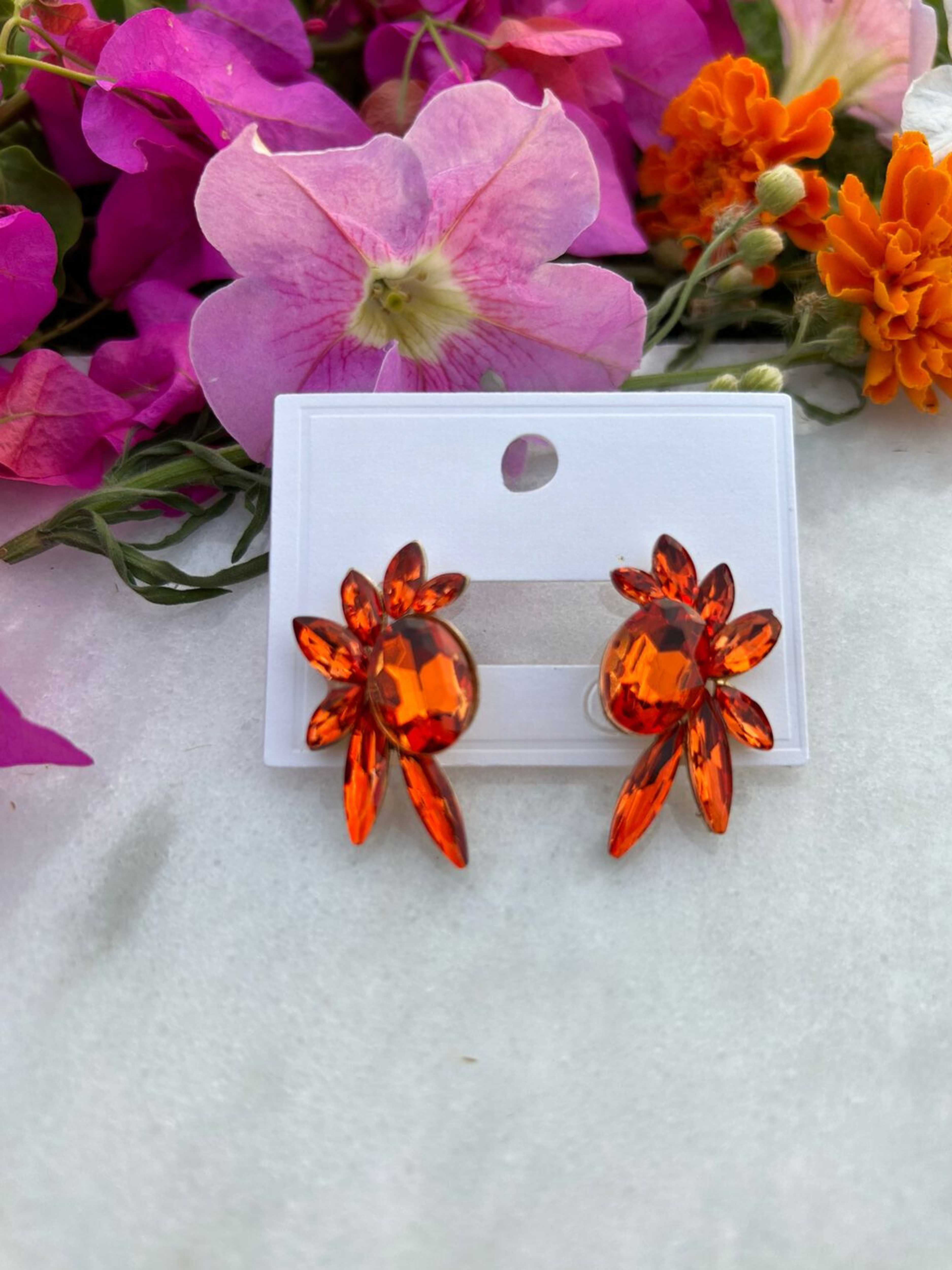 Set your bold elegance with the Fiery Bloom Crystal Earrings, a mesmerizing blend of passion and radiance. Featuring either striking red and orange crystals arranged in a floral-inspired design, these earrings embody warmth, confidence, and timeless beauty
